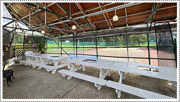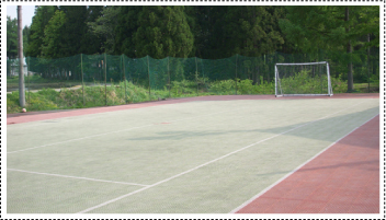 | ▲多目的コート・フットサル・バスケットetc. | ▲多目的コート横のバーベキュー場。団体のお客様にも対応。 |