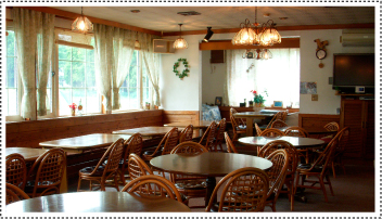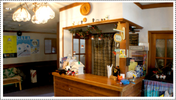 | ▲エントランスをくぐると、かわいらしいフロントとロビー。 | ▲明るく広々としたダイニングルーム。 |